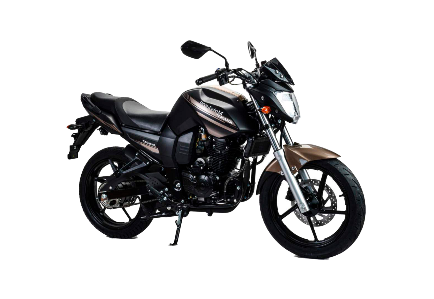 Мотоцикл Motoland BANDIT 300 является классическим представителем семейства дорожным мотоциклов. При этом он обладает всеми чертами мощного сити-байка необходимыми для комфортного передвижения как по городу, так и по шоссе.Стальная рама, объем топливного бака 18 литров. Расход топлива 3 л. на 100кмПодвеска передняя: Телескопическая. Подвеска задняя: моноамортизатор.Колесные диски алюминиевые, размер колес — 17 дюймов. Размер резины (перед / зад): 100/80/17 140/60/17 Зеркала, крепление под номер, подножки второго пассажира. Тормоза дисковые. Мягкое сиденье, обшивка из кож-замаФара, электростартер, замок зажигания, АКБ, поворотники, стоп-сигнал, электронная приборная панель.Двигатель 175FMM бензиновый с воздушно-масляным охлаждением, его рабочий объем - 300 кубов, мощность 25 л.с. Коробка передач - механическая, 5-ступенчатая, знакомая всем водителям по автошколе, а потому разобраться не составит труда.