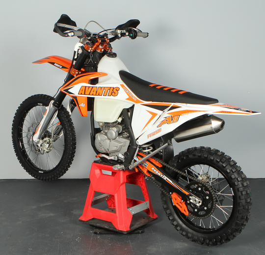 Новый Avantis A8 разработан специально для тех, кто хочет войти в мир эндуро. Комплектация с двигателем ZS 172 FMM-5 — именно тот вариант, с которого стоит начать новичкам.Мощность двигателя составляет 25 л.с., что является оптимальным выбором для первых тренировок на оффроуде. Внедорожная компоновка модели приближена к спортивной серии Avantis Enduro, поэтому данная модель отличается легкостью в управлении и не потребует больших усилий при маневрировании даже у тех, кто впервые сел за руль мотоцикла.Благодаря надежной подвеске ККЕ и большому дорожному просвету Авантис А8 легко преодолевает даже самый сложный рельеф. Однако важно помнить, что это полноразмерный взрослый мотоцикл. Высота по седлу у него составляет 960 мм и накладывает некоторые ограничения: комфортно на этом мотоцикле будет обладателям роста от 175 см и выше.Все элементы управления размещены таким образом, чтобы райдер быстро запомнил расположение основных органов управления. Яркая LED-панель обеспечивает отличную читаемость индикаций и показателей, что позволит легко отслеживать нужную информацию. Яркая светодиодная фара головного света обеспечивает хорошую видимость и большое пятно освещения, поэтому тренироваться на Avantis A8 можно в любое время суток.На Avantis A8 с завода установлены алюминиевая защита рычагов, пластиковая защита картера и герметичная защита всех разъемов. Колеса мотоцикла базируются на легких и прочных ободах UNISON и обуты во внедорожную резину Yuanxing. Данные покрышки отличаются редкой шашкой и обеспечивают хороший зацеп.Приобретая Авантис А8 вы получаете управляемый, надежный, а главное — полностью подготовленный для тренировок мотоцикл, на котором уже в базовой комплектации имеется все необходимое для покорения бездорожья.