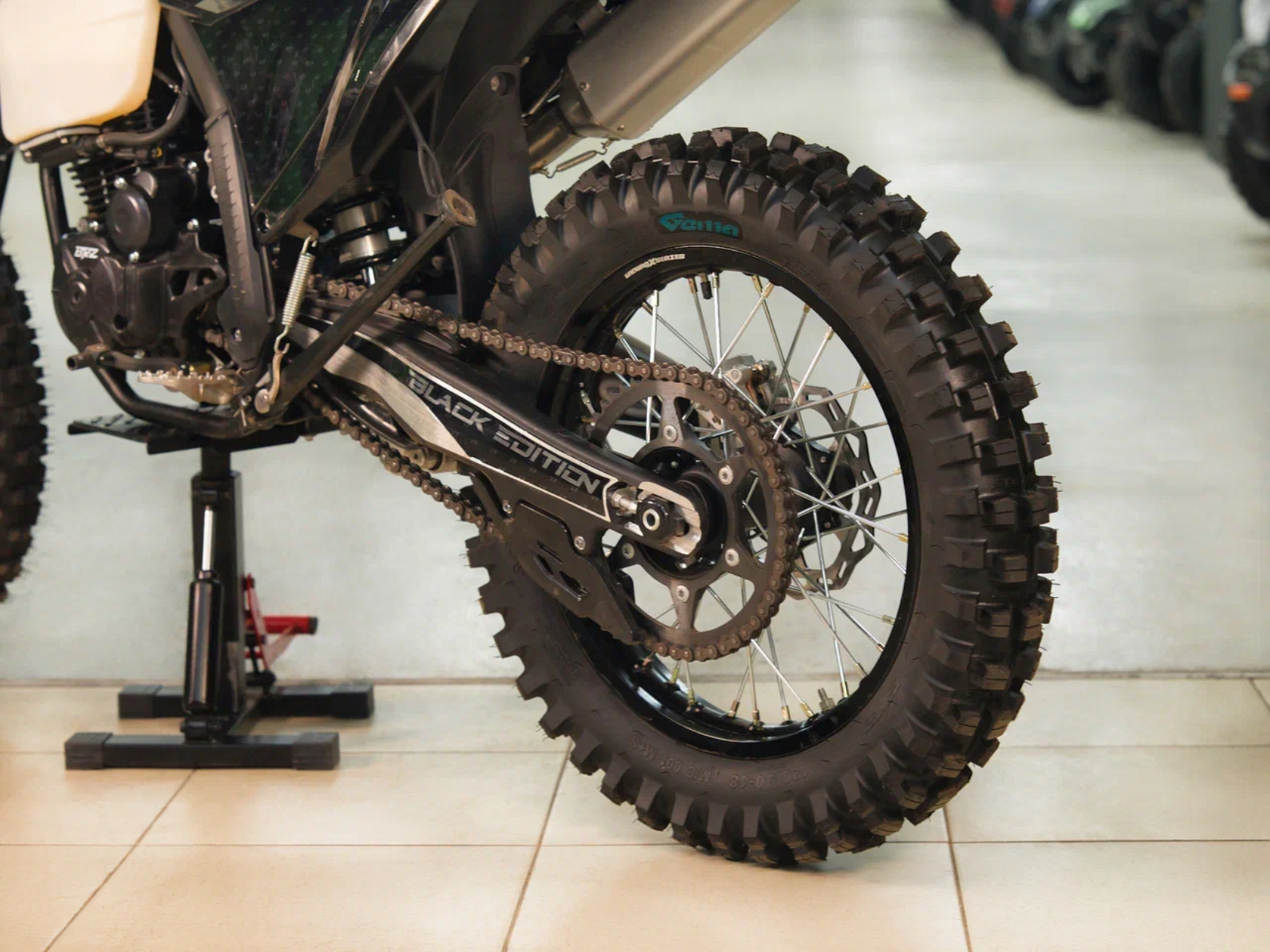 Размер и тип колес – 21х18 обода алюминиевые. Размер передней покрышки 80/100-21. Размер задней покрышки 120/100-18