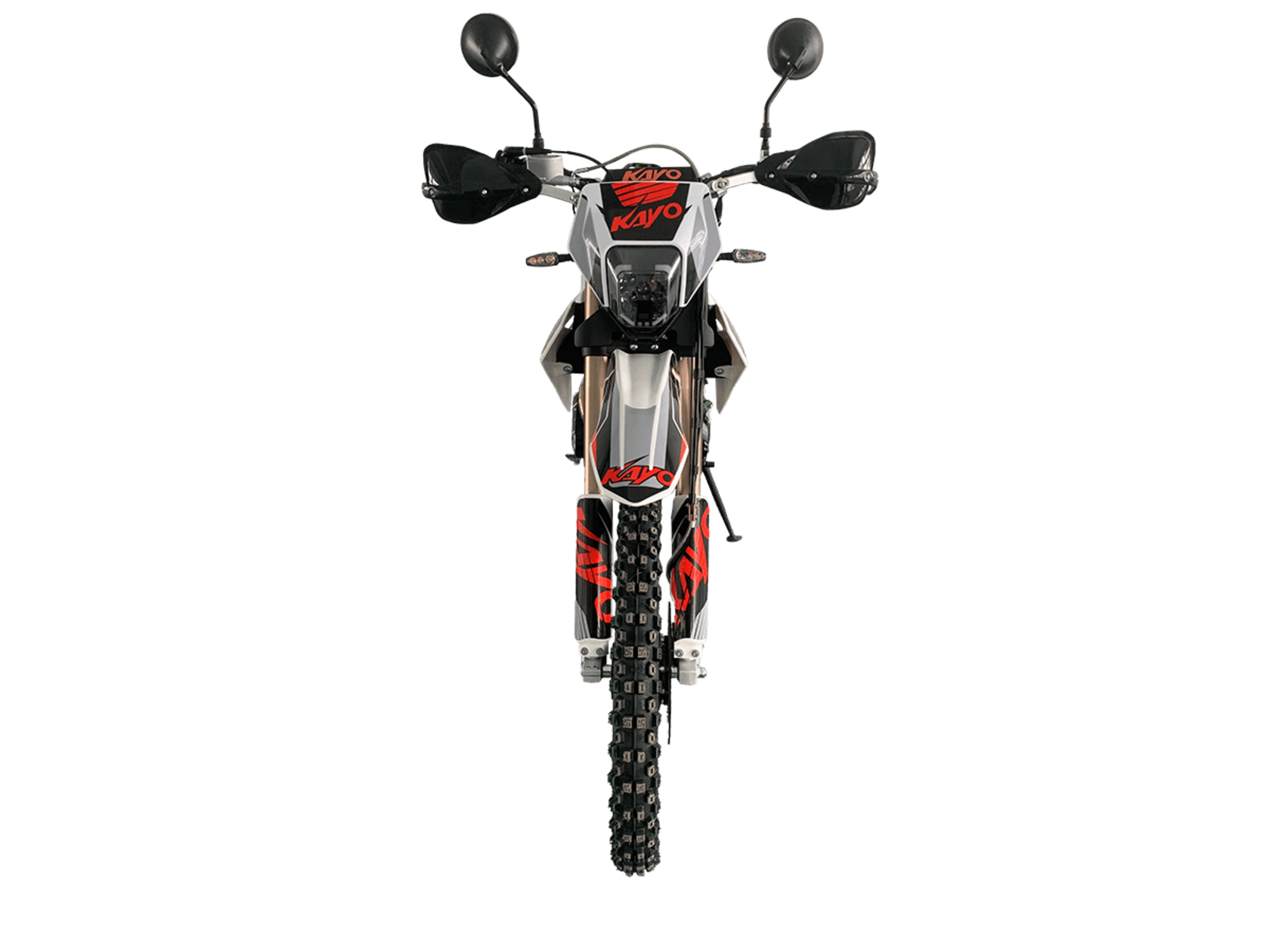 Мотоцикл KAYO K3 300 Road 21/18 2025 – модель нового прорывного эндуро, модернизированная для поездок по дорогам общего пользования. Модель Road имеет ПТС и всё необходимое снаряжение: приборная панель, указатели поворота, стоп-сигнал, звуковой сигнал, зеркала заднего вида. Для перевозки грузов установлена задняя багажная платформа, а для поездок с пассажиром имеется дополнительная пара подножек.Мотоцикл оснащён одноцилиндровым 4-тактным двигателем ZONGSHEN PR300/ZS175FMM-5 объёмом 271,3 см³ с балансирным валом и воздушным типом охлаждения. Максимальная мощность в 21,75 л.с. достигается при 8500 об/мин, а максимальный крутящий момент 22 Нм при 6500 об/мин. Соотношение диаметра и хода поршня 75,0х61,4. Степень сжатия 9,29:1. Карбюратор NIBBI PE30 обеспечивает топливную экономность и бесперебойную работу в самых сложных заездах. На мотоцикле установлена 5-ступенчатая коробка передач и цепной привод. Запуск двигателя осуществляется с помочью электростартера или кикстартера. Объём топливного бака 10 литров.Спицованные колёса с алюминиевыми ободами имеют диаметр 21 дюйм спереди и 18 сзади. Для подвески спереди используется телескопическая вилка перевёрнутого типа длиной 830 мм, а сзади установлен моноамортизатор длиной 450 мм. Оба компонента регулируются. На мотоцикле установлены гидравлические дисковые тормоза с 2-поршневой системой спереди и однопоршневой сзади.Мотоцикл готов к самым суровым вызовам бездорожья. Удобное расположение фильтр-бокса позволяет легко обслуживать его после заездов. Руль оснащён алюминиевой защитой рук с высокими пластиковыми накладками. На мотоцикле используются ручки-«неломайки» с регулировкой положения рычага и короткоходная ручка газа.Габариты 2100х810х1180 мм, вес 109 кг. Клиренс 340 мм, колёсная база 1390 мм, высота по седлу 900 мм.