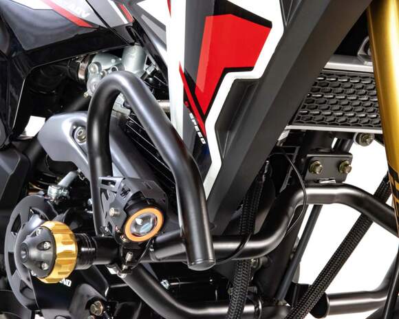Motoland 300 является классическим турэндуро с укороченной колесной базой в размере 1340 мм. Он обладает более вертикальным углом наклона вилки около 70 градусов и прямой посадкой, что делает его идеальным выбором как для начинающих райдеров, так и для опытных мото путешественников. Особенностью такой геометрии является легкость управления на низких скоростях. В сочетании с мощным двигателем 175FMN-6 (с балансир.), выдающим 25 л. с., мы получаем комфортный мотоцикл для городской езды и путешествий как по асфальту, так и по пересеченной местности.Мотоцикл Motoland 300 характеризуется своим ярким и узнаваемым дизайном, прочной рамой из Cro-mo труб, обладающей высокими прочностными характеристиками, а также современной подвеской с выносными регулировками компрессии и отскока. Он оснащен мет. ободами , наличием электростартера, прямоточным выхлопом и LED оптикой с возможностью переключения между ближним и дальним светом, а так же отдельными линзовыми ходовыми огнямиДвигатель 175FMM-6 с баланс.