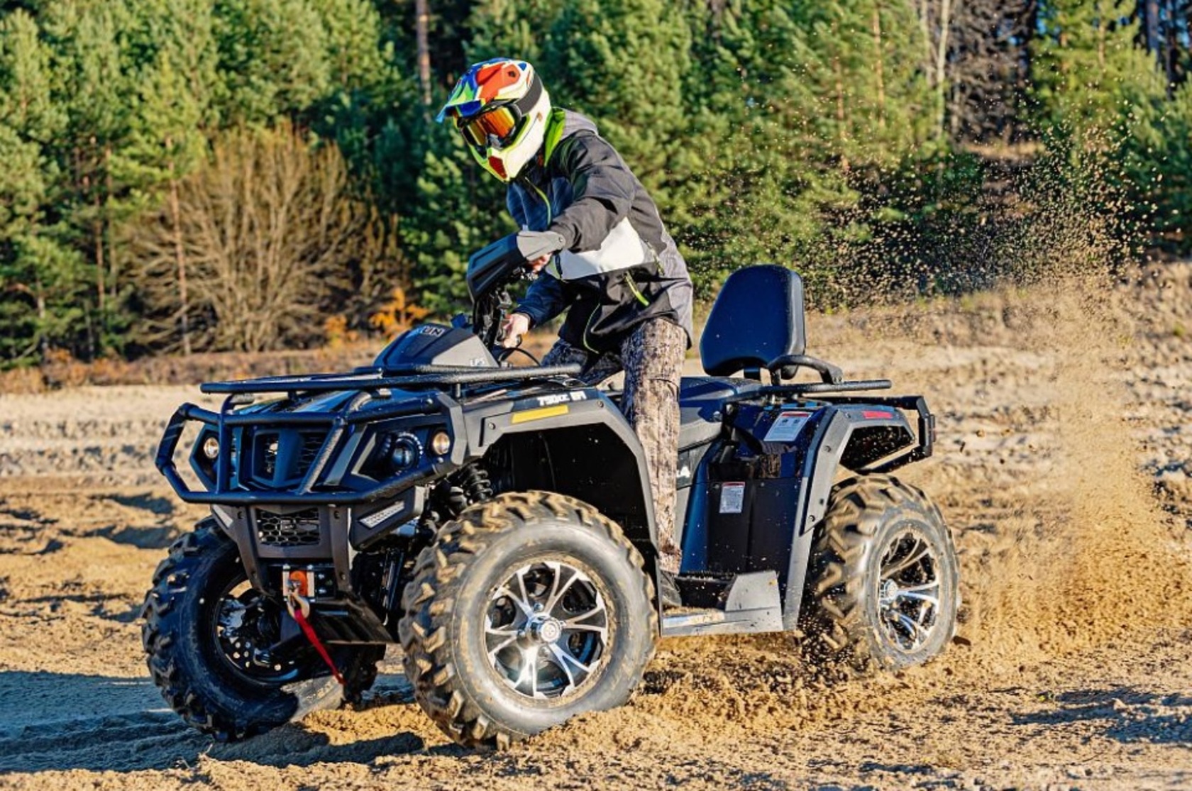 Квадроцикл HISUN TACTIC 750 LIMITED — многофункциональный вездеход с автомобильным рулевым управлением и посадкой. Разработан для эксплуатации в тяжелых условиях бездорожья. Укомплектован стальной сварной трубчатой рамой, пластиковыми обвесами с расширителями арок, передней лебедкой, двумя вместительными багажниками весом до 55 кг. Незаменим для походного туризма. Яркие LED – фары отлично освещают дорогу и гарантируют безопасность передвижения в темное время суток. Крупный протектор колес даст хорошее сцепление с грунтом. Продуманная эргономика обеспечивает высокий комфорт как для водителя, так и для пассажира, а вместительный бензобак на 17 литров и небольшой расход топлива позволит увеличить расстояния Ваших путешествий.