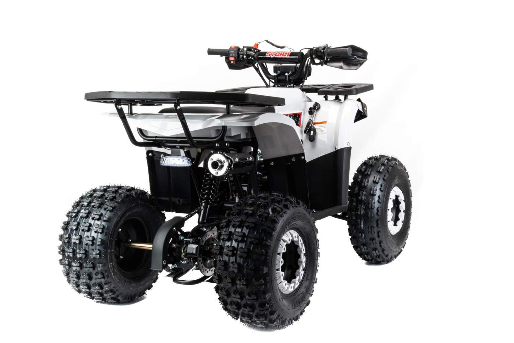 Квадроцикл Motoland (п) 125 STORM A - cтильный, современный, универсальный квадроцикл подойдет вашему ребенку как мальчику, так и девочке. Его утилитарный дизайн разработан с учетом вкусов современного поколения и понравится всем без исключения.Квадроцикл не предназначен для дорог общественного пользования. Его 8 дюймовые колеса на хорошей внедорожной резине с легкостью преодолеют все преграды в виде грязи, песка, луж и кочек. А что еще нужно для веселых покатушек в выходные дни?У этого квадроцикла отличная управляемость в любых условиях эксплуатации, благодаря грамотной настройке подвески. Данный квадроцикл оснащен автоматической коробкой передач с реверсом, который установлен на усиленной раме, что дает уверенность в прочности конструкции.Ваш ребенок быстро овладеет навыками езды на данной технике и получит массу запоминающихся эмоций.Квадроцикл оснащен двигателем 1P54FMI 125 см3, мощностью 8 л.с. c воздушным охлаждением, электрстартером, LCD (электронная) панелью приборов, светодиодной оптикой, стоп-сигналомДля безопасности имеется чека отключения двигателя, если ребенок отпускает руль, то мотоцикл практически сразу отключается при разрыве чеки.Максимальная скорость 60 км/ч. Объем топливного бака составляет 3,5 л