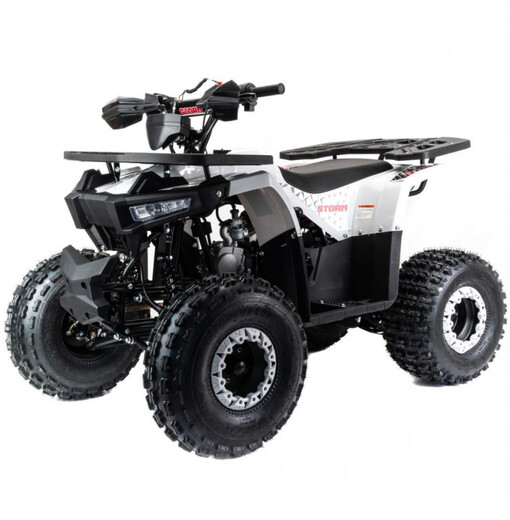 Квадроцикл Motoland 125 STORM cтильный, современный, универсальный квадроцикл подойдет вашему ребенку как мальчику, так и девочке. Его утилитарный дизайн разработан с учетом вкусов современного поколения и понравится всем без исключения.Квадроцикл не предназначен для дорог общественного пользования. Его 8 дюймовые колеса на хорошей внедорожной резине с легкостью преодолеют все преграды в виде грязи, песка, луж и кочек. А что еще нужно для веселых покатушек в выходные дни?У этого квадроцикла отличная управляемость в любых условиях эксплуатации, благодаря грамотной настройке подвески. Данный квадроцикл оснащен автоматической коробкой передач с реверсом, который установлен на усиленной раме, что дает уверенность в прочности конструкции.Ваш ребенок быстро овладеет навыками езды на данной технике и получит массу запоминающихся эмоций.Квадроцикл STORM оснащен двигателем 1P54FMI 125 см3, мощностью 8 л.с. c воздушным охлаждением, электрстартером, LCD (электронная) панелью приборов, светодиодной оптикой, стоп-сигналомДля безопасности имеется чека отключения двигателя, если ребенок отпускает руль, то мотоцикл практически сразу отключается при разрыве чеки.Максимальная скорость 60 км/ч. Объем топливного бака составляет 3,5 л