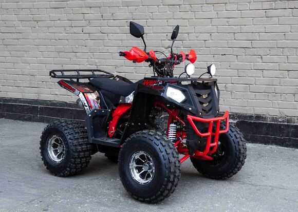 Стильная современная новинка 2019 года от компании WELS - квадроцикл для детей и подростков WELS THUNDER EVO X 125 предназначен для детей и подростков и обладает всеми необходимыми характеристиками, чтобы ребенок чувствовал себя на рулем настоящего квадроцикла, а его родители при этом были бы спокойны за безопасность юного пилота. ЛЮКСовая версия отличается от обычной наличием зеркал, дополнительной светодиодной оптики, спортивным глушителем, также квадроцикл укомплектован песочной резиной.125 кубового мотора вполне хватает для непоседливых гонщиков. Если же Вам кажется, что этого много - воспользуйтесь ограничителем скорости.Дисковые тормоза спереди и сзади обеспечат своевременную остановку перед препятствием.Защита рук в комплектации оградит ребенка от ударов веток и других помех.Песочная резина. Большие колеса 19,7-8, зад.: 18,9.5-8.Наличие укрепленных багажников спереди и сзади позволит установить на квадроцикл кофр и выезжать на природу с необходимым набором вещей и инструментов.Светодиодные фары для передвижения в темное время суток.Моточасы, светодиодные фары, звуковой сигнал, колпаки - все включено в комплектацию.Доступен в расцветках: черно-красный, бело-красный, живописно-красный, зеленый камуфляж