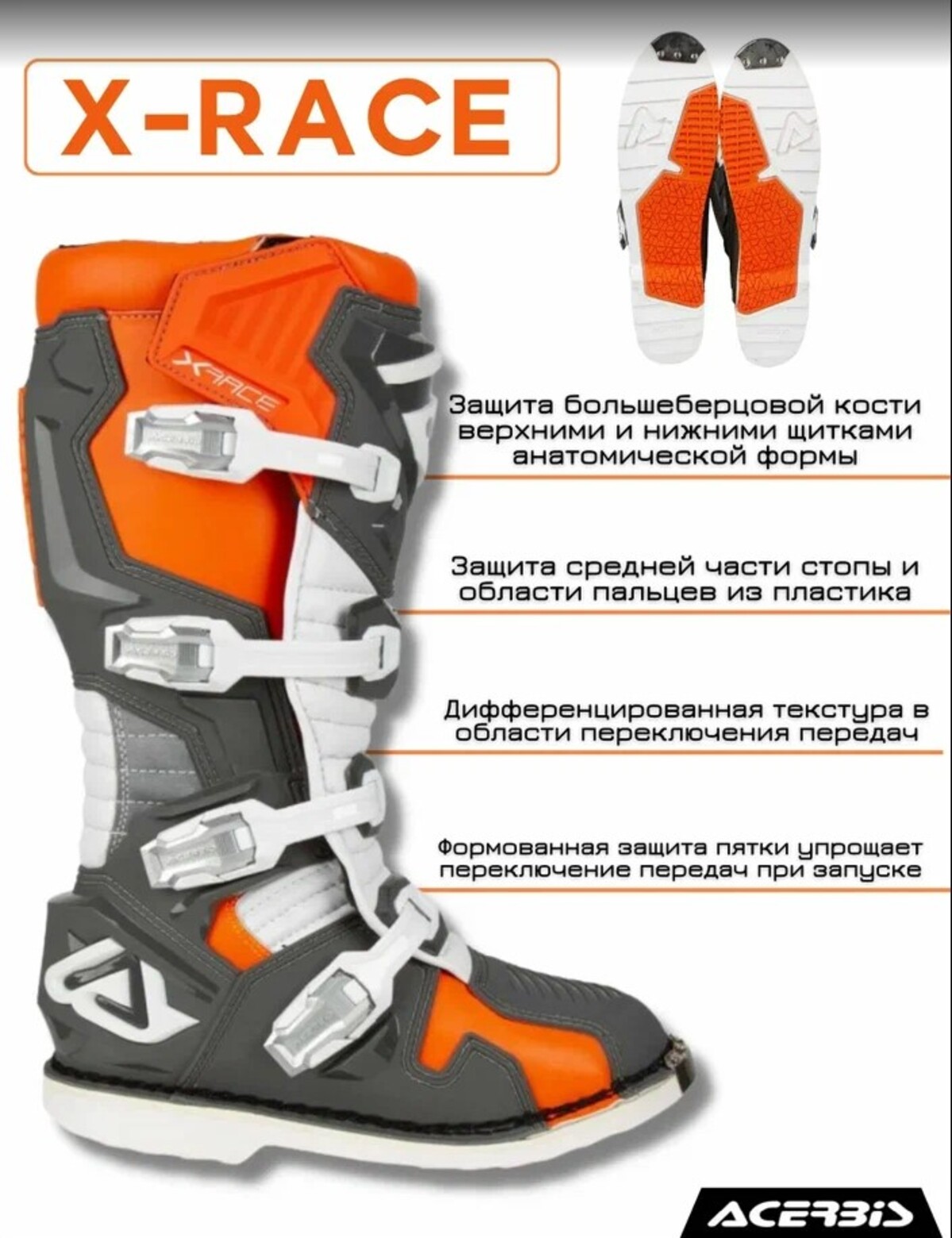 Главная ... Ботинки Мотоботы кроссовые Acerbis X-RACE Orange/Grey, (р.44)