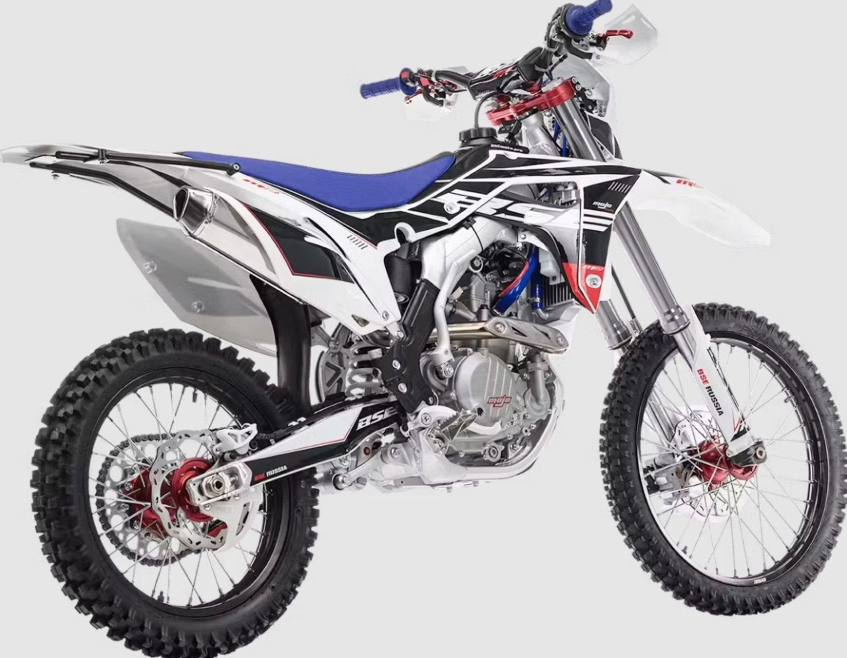 Кроссовый мотоцикл BSE M2 250e 21/18 - полноразмерный спортивный мотоцикл на алюминиевой раме.Ставший уже классикой в мире мотокросса и эндуро среди китайских производителей - полноразмерный мотоцикл на оригинальной, многосоставной, невероятно крепкой и запатентованной заводом Bosuer алюминиевой раме.Идеально сбалансированный, устойчивый, крепкий мотоцикл. Сердце M2 – мощный, эластичный и надежный 250 кубовый Zongshen ZS 177 MM мощностью 27 лс с водяным охлаждением. Отличные показатели крутящего момента во всем диапазоне оборотов. Система подачи топлива – спортивный карбюратор NIBBI RACING 34. Имеется вентилятор охлаждения. Коробка передач - 6 ступенчатая механическая.M2 уже в заводской комплектации готов к покорению серьезного бездорожья и участия в соревнованиях. Подвеска MOJO c большими ходами имеет полный диапазон регулировок и помогает отрабатывать даже самые жесткие приземления, с лёгкостью "проглатывает" все неровности. Идеальная развесовка и сбалансированность конструкции мотоцикла даёт преимущество при прохождении острых поворотов и подъёмов.На мотоцикле установлено все необходимое для оффроуда: вилка “перевертыш”, литые рычаги задней прогрессии, алюминиевый маятник, прочный задний бугель, “злая” внедорожная резина. А также: усиленные легкосплавные колёсные диски MOJO, усиленная цепь, защита рук, датчик моточасов, прочные анодированные CNC ступицы, складные СNC рычаги тормоза и сцепления, колесные подшипники NTN, защита коллектора, картера двигателя и тормозных дисков. Комплектуется одинарным либо двойным глушителем. Мощная гидравлическая тормозная система HSК Racing остановит байк в любых условиях.На BSE M2 также можно с комфортном отправиться в продолжительное путешествие благодаря удобному сиденью, широкому спортивному рулю, наличию электростартера и топливному баку на 6.5 литра. C яркой LED фарой головного света можно кататься в ночное время. Хочется также отметить современный дизайн мотоцикла.