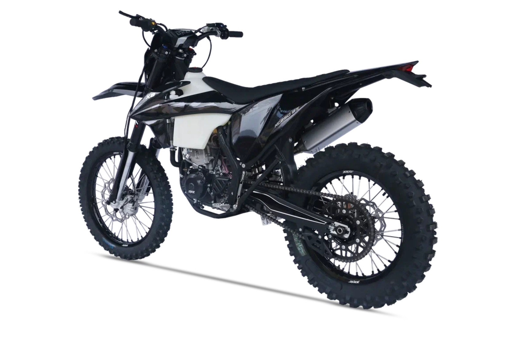 Комплектация Руль 28мм. Короткоходная ручка газа. Цепь 520. Алюминиевая лапка КПП, боковые накладки на рамы. Счетчик моточасов, приборная панель. Стоп сигнал, Грипсы Lock on, Пластиковая защита радиатора,