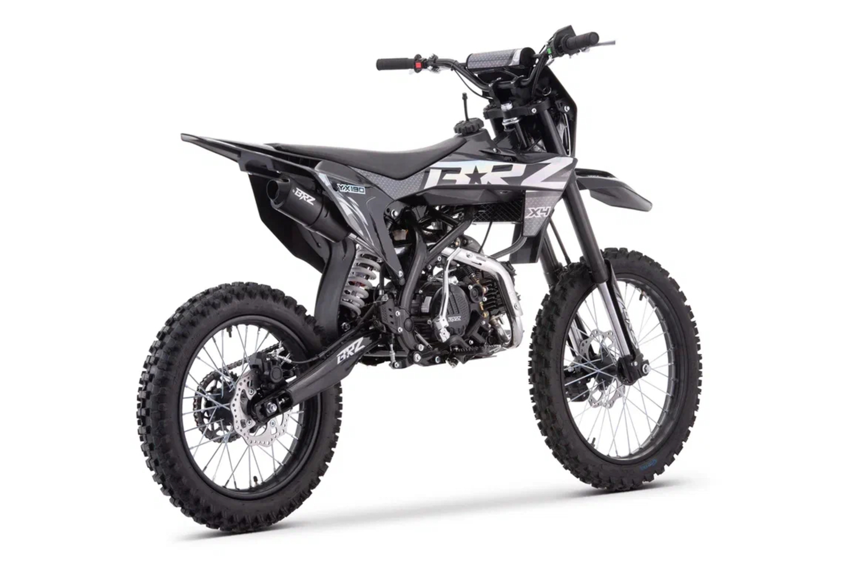Питбайк BRZ X4 ZS190 19/16 подойдет для райдеров с ростом от 150 см. на механической N-1-2-3-4-5 КПП, с электростартером и фарой.Характеристики:Кубатура – 190cc;