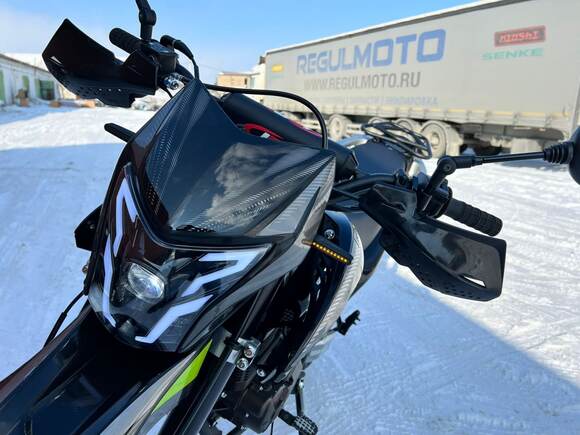 Мотоцикл Regulmoto Tour Enduro 250PR - легкий турэндуро от Regulmoto. Оснащен двигателем с балансирным валом гасящим вибрации. Вакуумный карбюратор PD30 даёт экономию топлива и мощь на низах. На мотоцикл установлена раздушенная выхлопная система, однако в меру тихая. Коробка передач на выбор: 5-ти ступенчатая с кикстартером, либо 6-ти ступенчатая без кикстартера. Оснащен усиленным маятником и прогрессией. Диаметр перьев передней вилки 41мм. Усиленная 520-ая сальниковая цепь. Подвеска от Regulmoto Sport 003.Весь пластик гибкий и не ломается при загибах. Алюминиевый руль переменного сечения и удобное двухместное эргономичное сиденье. Из плюсов модели также стоит отметить электронный спидометр, оснащение защитой рук и ловушкой цепи. Мотоцикл поставляется с ПТС. Яркая светодиодная фара LED даёт возможность передвигаться в темное время суток.
